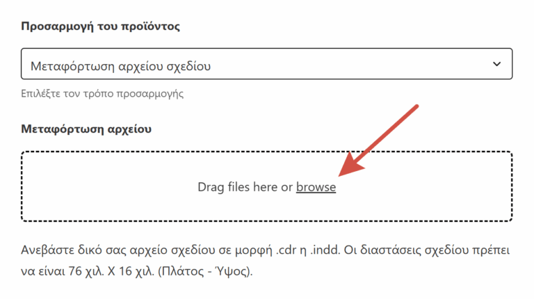 Πατώντας στο βελάκι της αναδυόμενης λίστας επιλέξτε Μεταφόρτωση αρχείου σχεδίου, θα αναδιπλωθεί πλαίσιο μεταφόρτωσης.